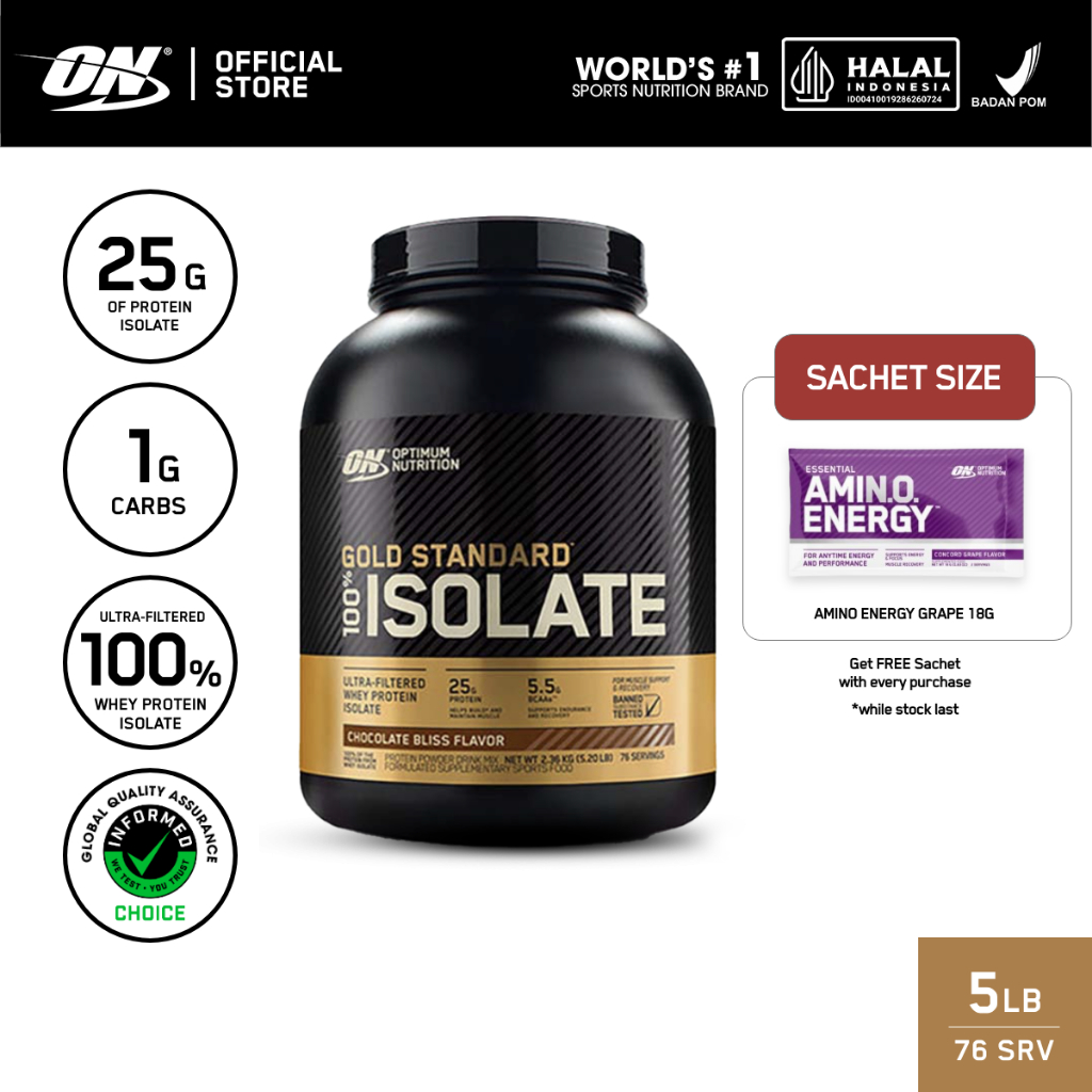 [Free Amino Grape Sachet] Optimum Nutrition Standard 100 PERSEN Isolate Protein 5 Lbs - Whey / Susu Protein / Suplemen / Gym