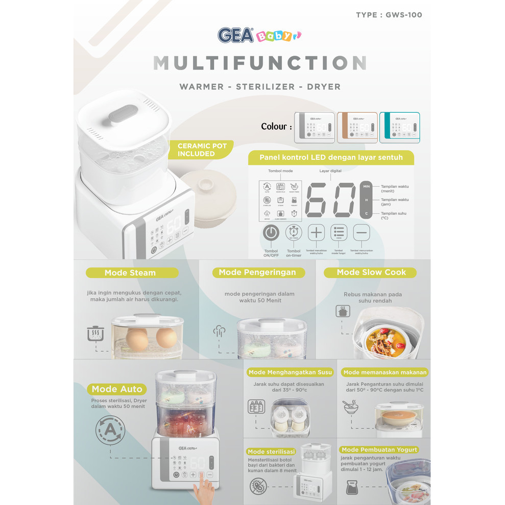 Gea Baby Multifunction Warmer Sterilizer Dryer Gws 100 / Mesin Penghangat Sterilisasi Pengering Multifungsi