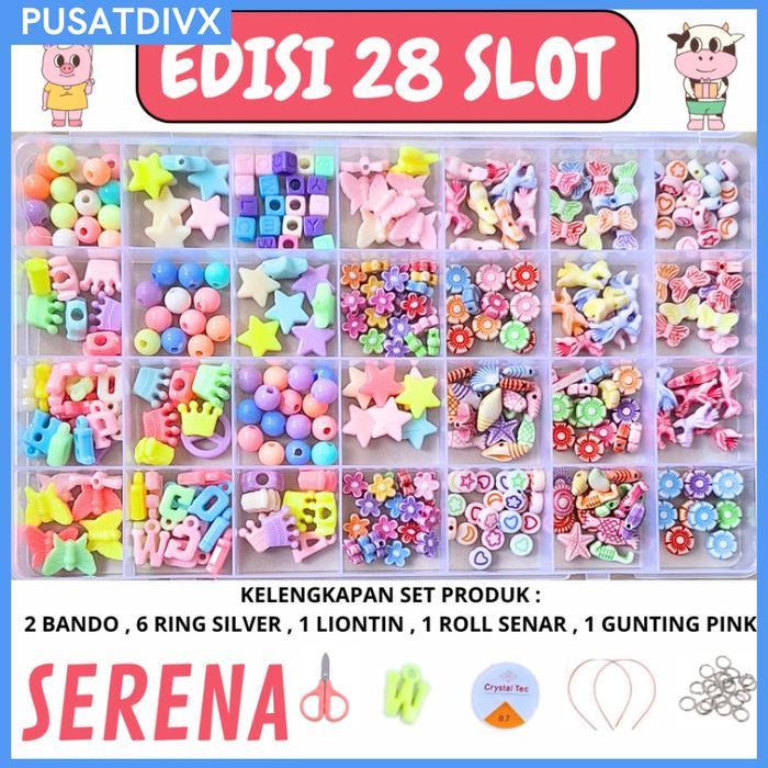 NAURALYN 1 SET ANAK-ANAK GADIS DIY GELANG MANIK-MANIK 24 KOMPARTEMEN - ROSE