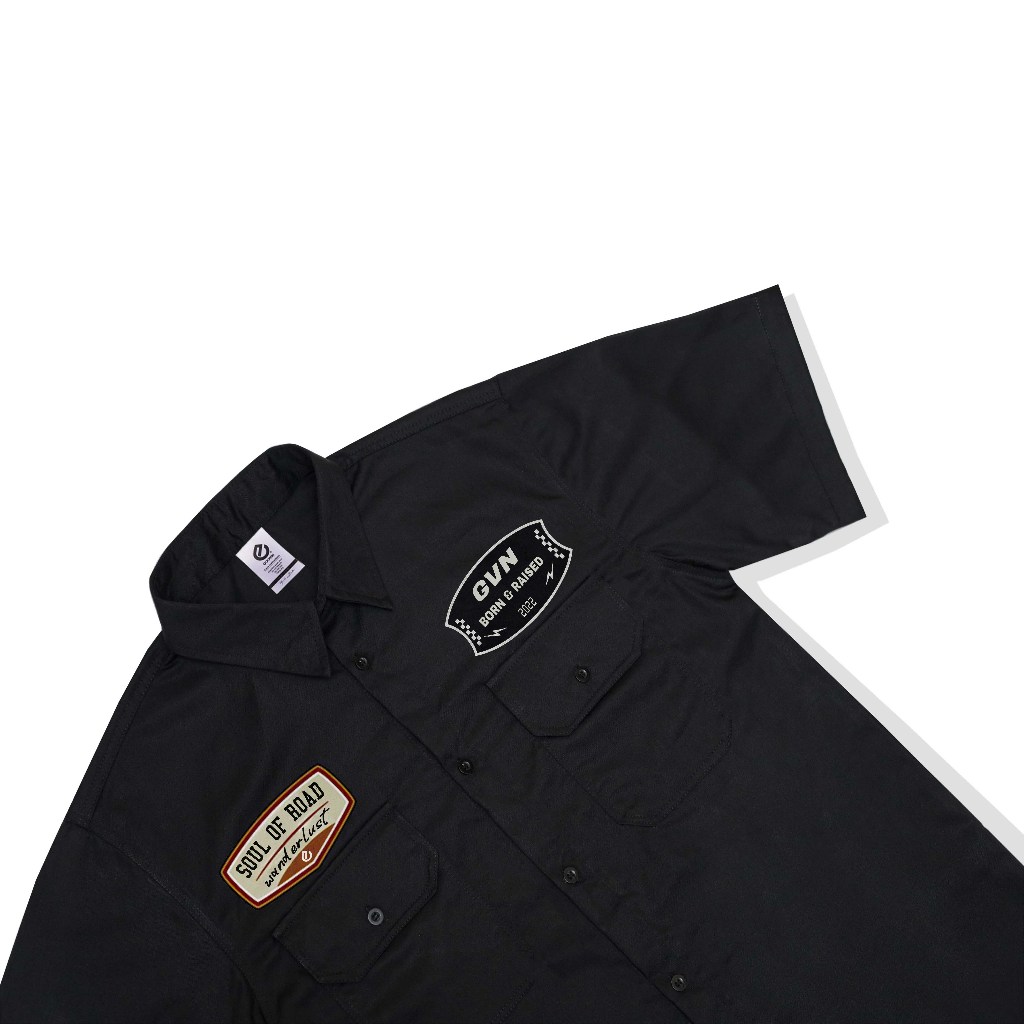 Goovin Workshirt Wanderlust Kemeja Lengan Pendek Hitam