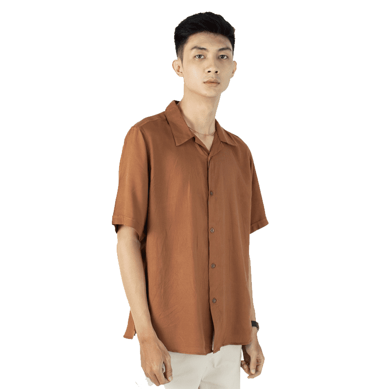 Fortklass Kemeja Rayon Polos Pria Lengan Pendek Hem Pria Kemeja Pantai Santai Earth Tone Distro