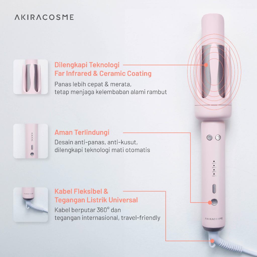 Akiracosme Catokan Curly Pengeriting Rambut Otomatis 32Mm Ion Negatif | Ac22Bz