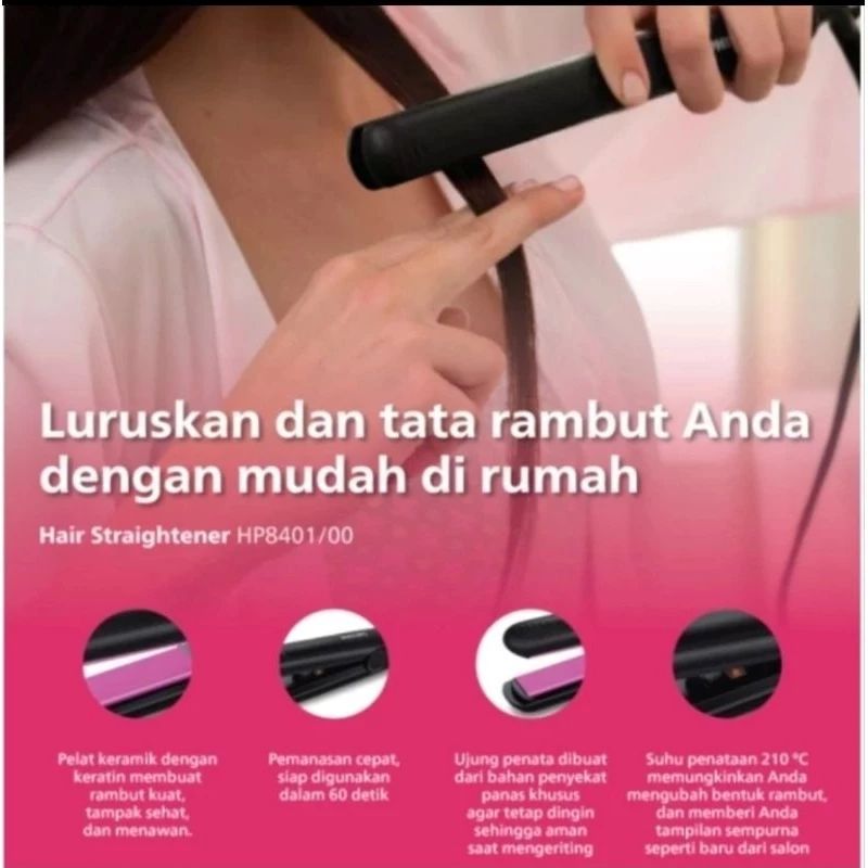 Philips Catokan Rambut Hp8401 / Bhs376 Catokan Rambut Lurus Straightener Keratin Ceramic
