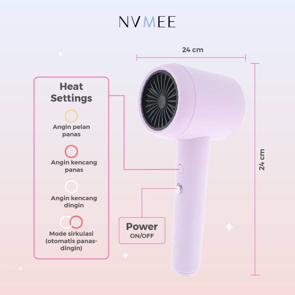 Nvmee Luna Hair Dryer Strong Wind & Low Watt Pengering Rambut
