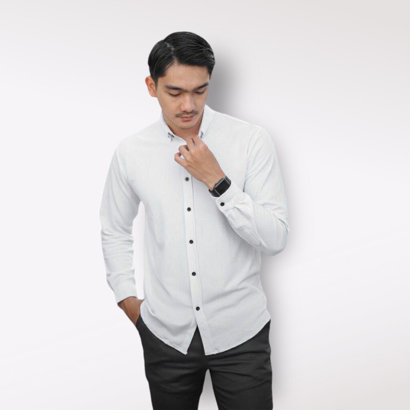 Aljosa Kemeja Pria Polos Putih Lengan Panjang Kerja Kantor