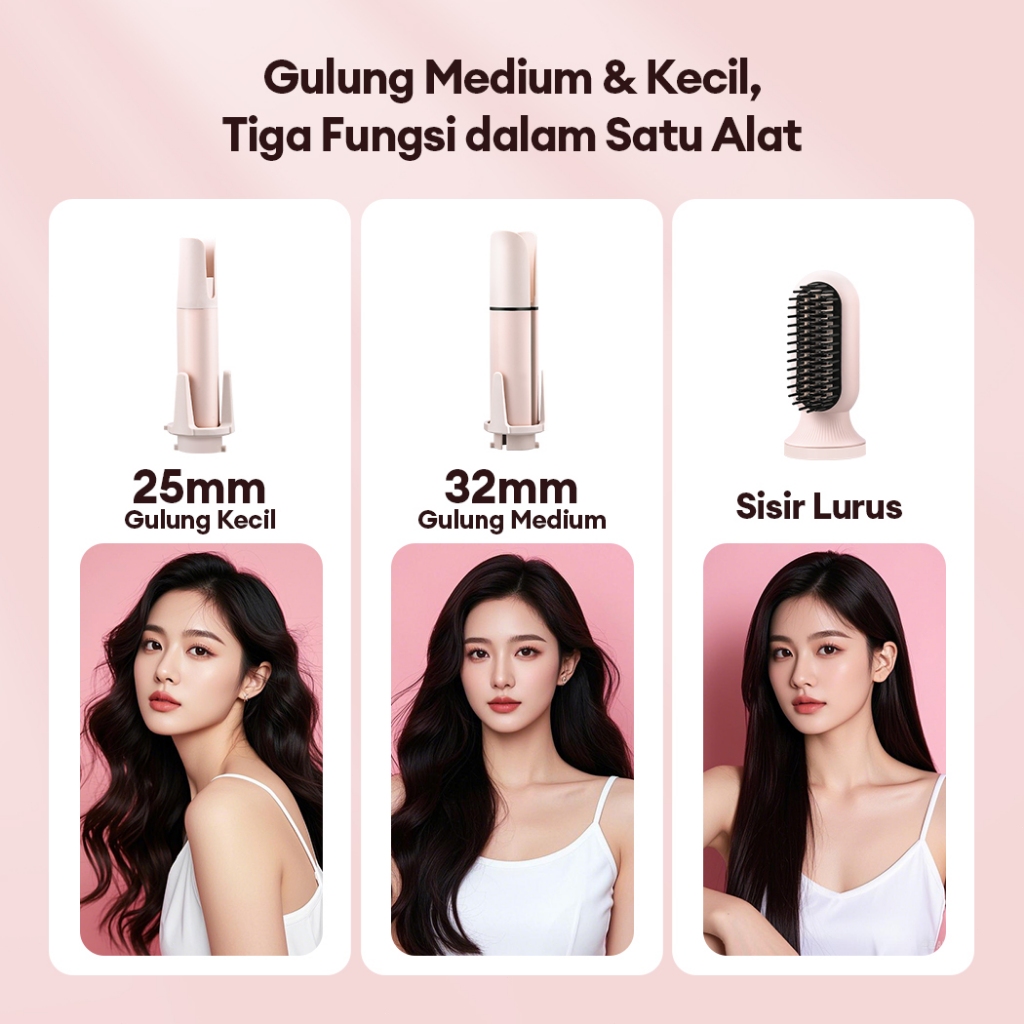 Jvjh Catokan Rambut Curly Otomatis 3-In-1 Multifungsi Sisir Catok Pelurus Rambut Kepala Pengganti Catok Curly Keriting