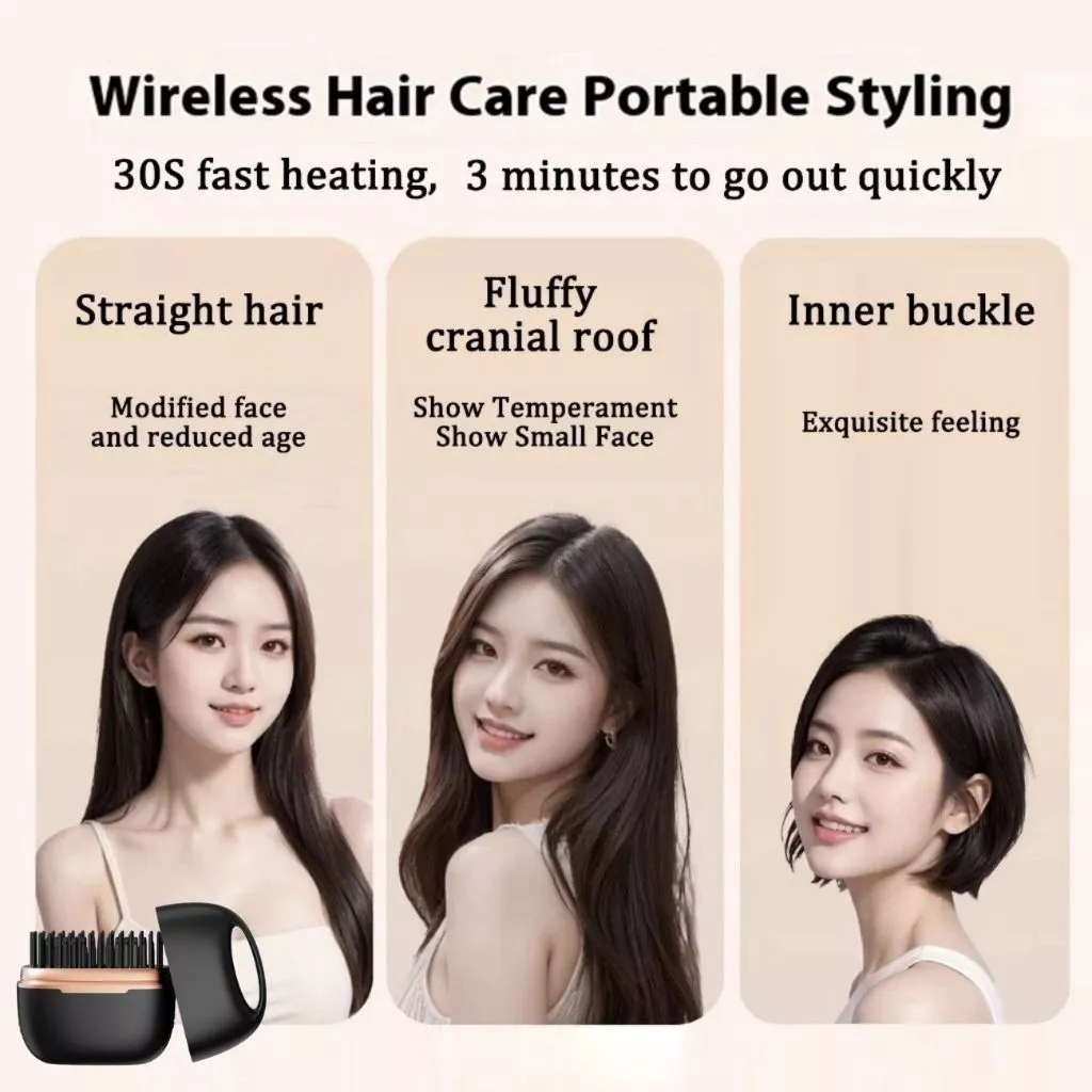 Catokan Rambut 2 In 1 Mini Portable Sisir Pelurus Rambut Untuk Lurus Dan Curly Otomatis Cordless Dengan Teknologi Kerati