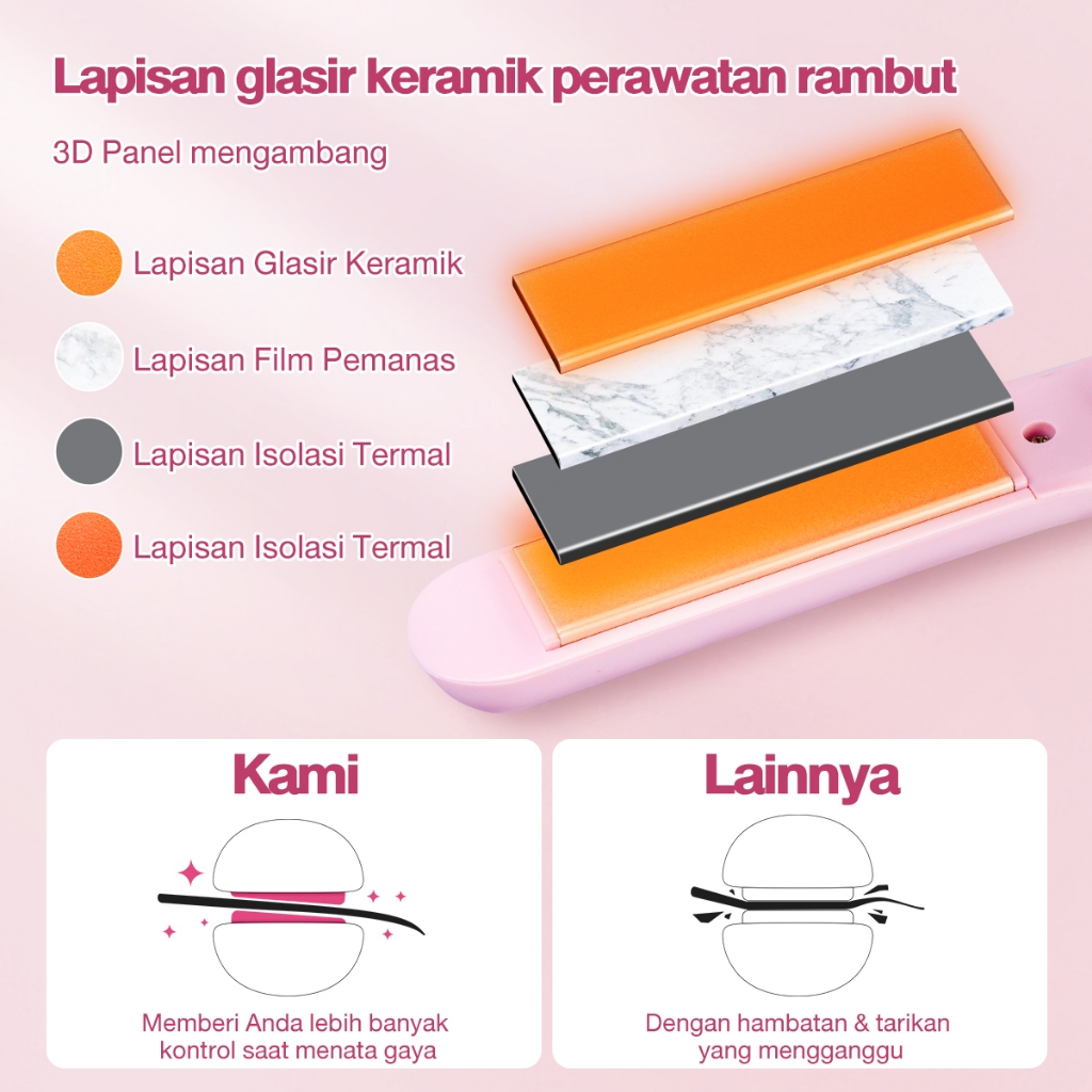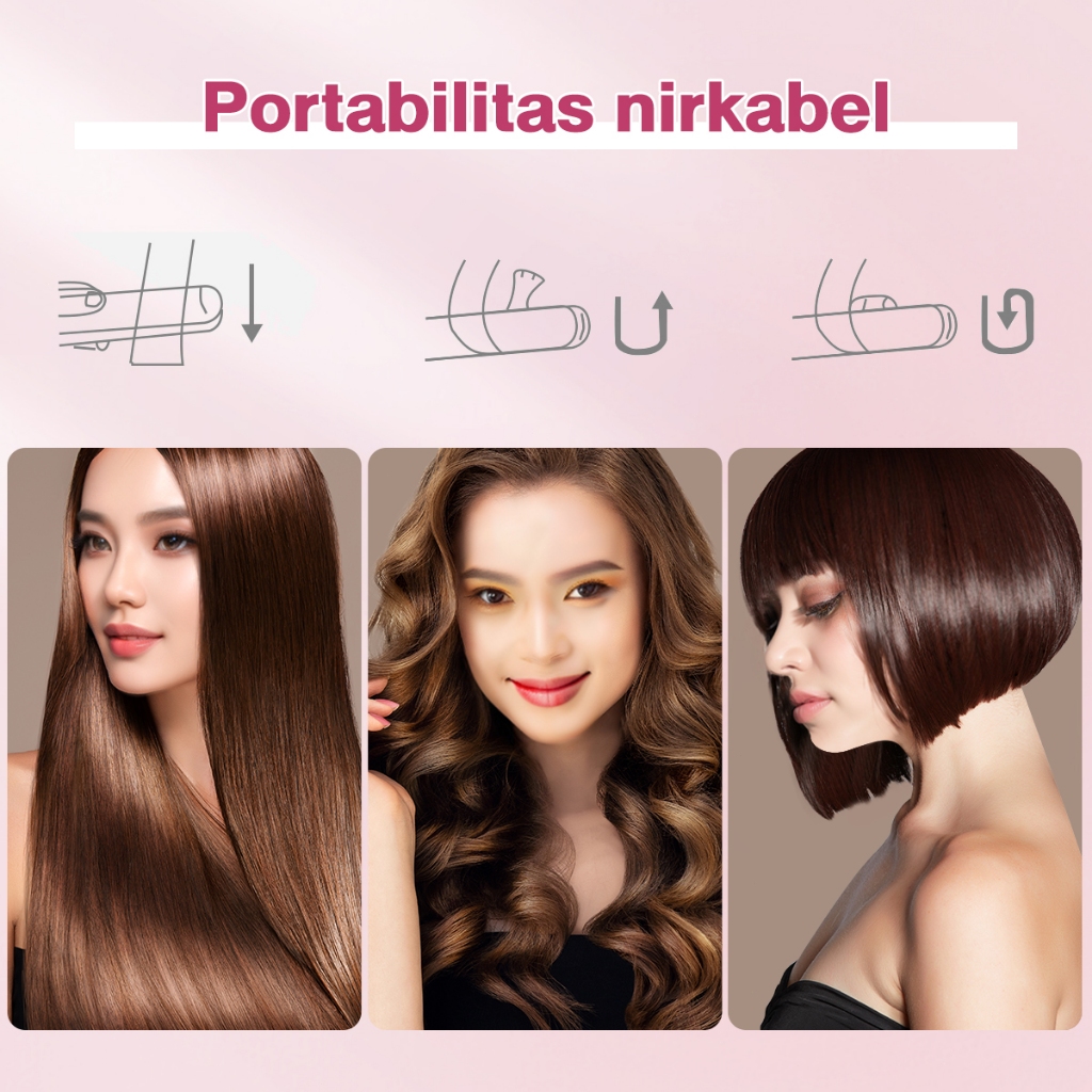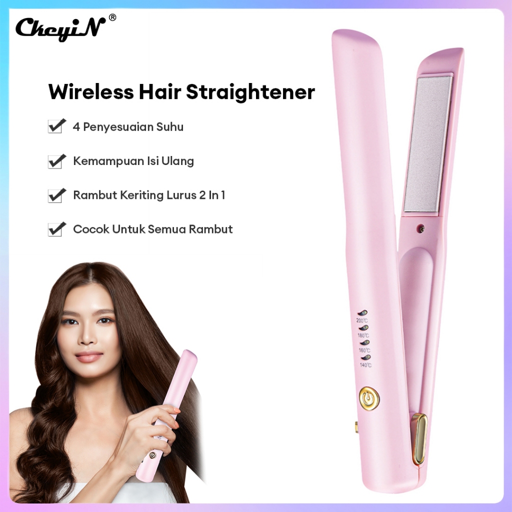 Ckeyin Hair Straightener 2In1 Cordless Hair Curly Catokan Rambut Lurus Portabel Catok Pelurus Rambut