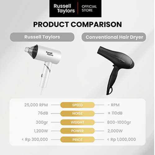 Russell Taylors Hd1 Speed Hair Dryer 25000 Rpm 2 Mode Pengering Rambut Garansi Resmi 1 Tahun