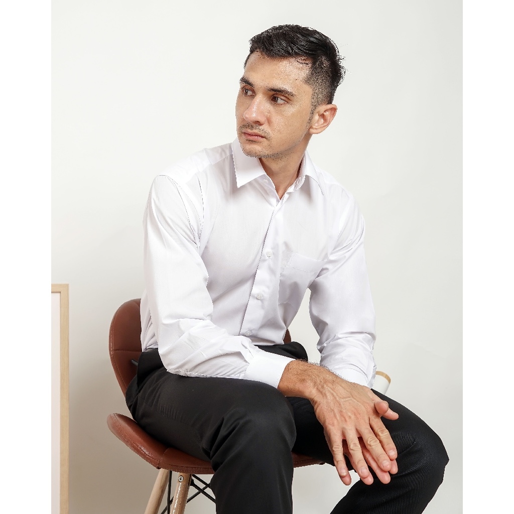 Boss Kemeja Polos Pria Lengan Panjang Putih