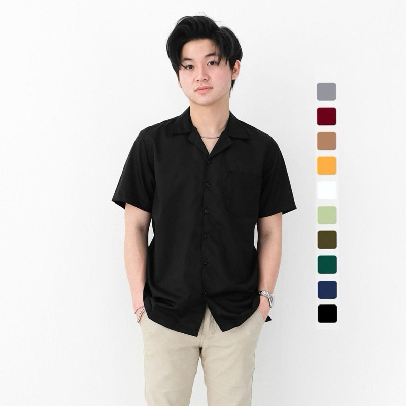 Smilesky Kemeja V Neck Pria Lengan Pendek Polos - Cotton Toyobo Adem Halus Ukuran M L Xl