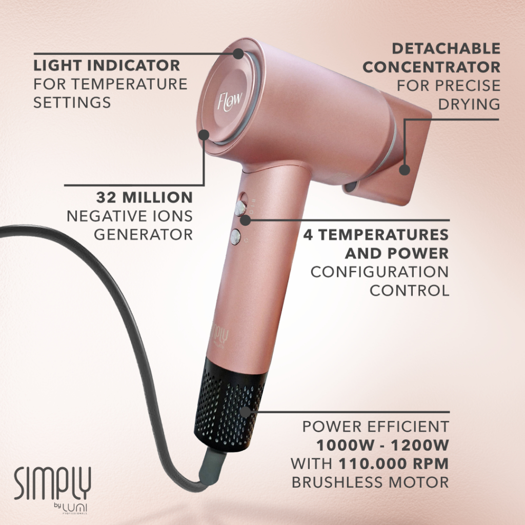 Simply By Lumi Professionals Flow Bldc Hair Dryer 32Million Ngative Ion - Free Pouch