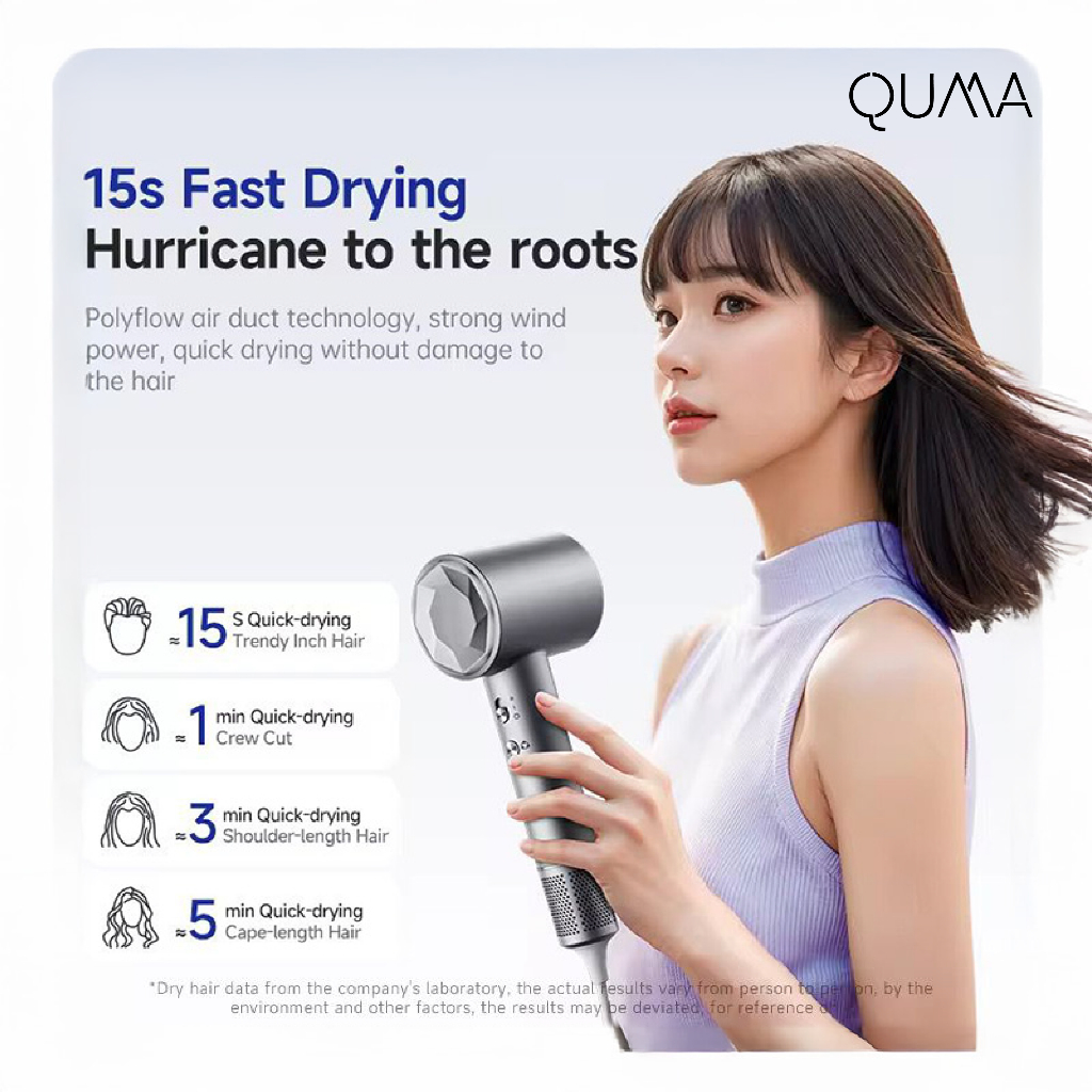 Quma High Speed Hair Dryer K2 Series | Pengering Rambut Profesional Fast Drying Strong Wind Blower Grey