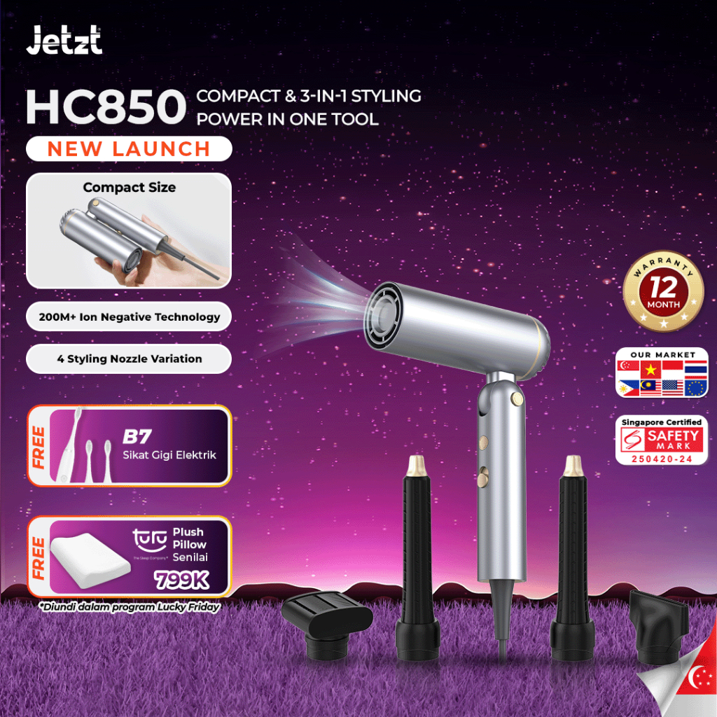 Jetzt Hc850 Foldable Hair Dryer With Plasma Ion Care - Pengering Rambut Travel Friendly