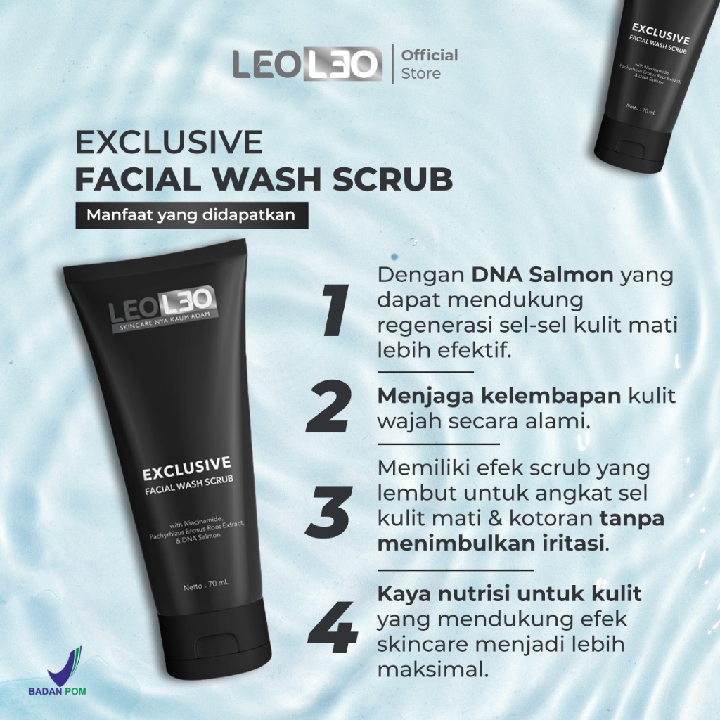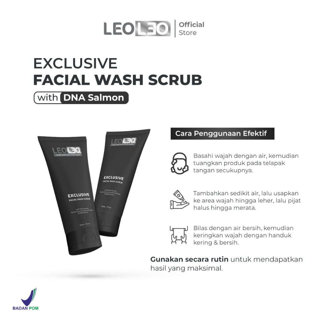 Leoleo Exclusive Facial Wash Scrub With Dna Salmon Facial Wash Man Sabun Cuci Muka Pria Cowok Mencerahkan Memutihkan Dan
