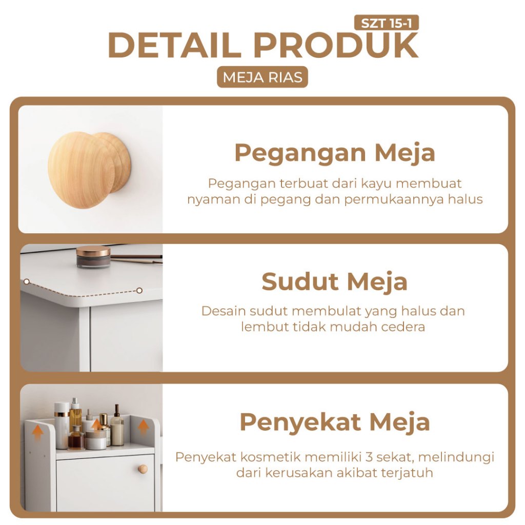 Furniture - Meja Kamar Aesthetic - Meja Make Up Minimalis Modern Dengan Cermin & Laci Serbaguna