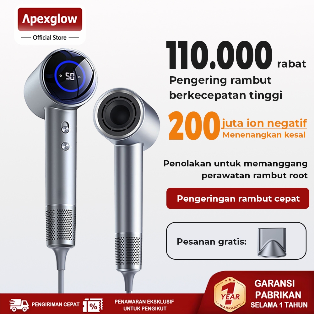Apexglow Pengering Rambut Ionnegatif 1600W 3.3M Portabel Keringinstan 4Levelsuhu Hairprotect