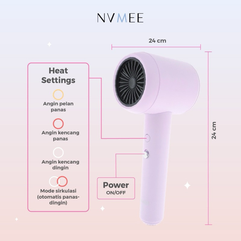 Nvmee Luna Hair Dryer Low Watt Original Bergaransi Resmi Nvmee Alat Pengering Rambut | Tnt Beauty Shop