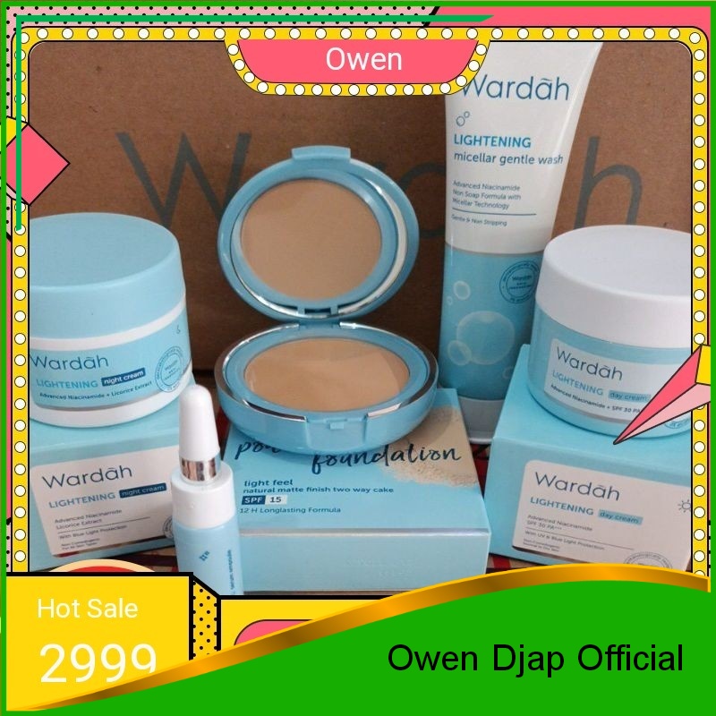 Paket Wardah Lightening Macam(Day30G.Night30G.Bedak Kaca.Sabun50Ml.Serum1Pcs)