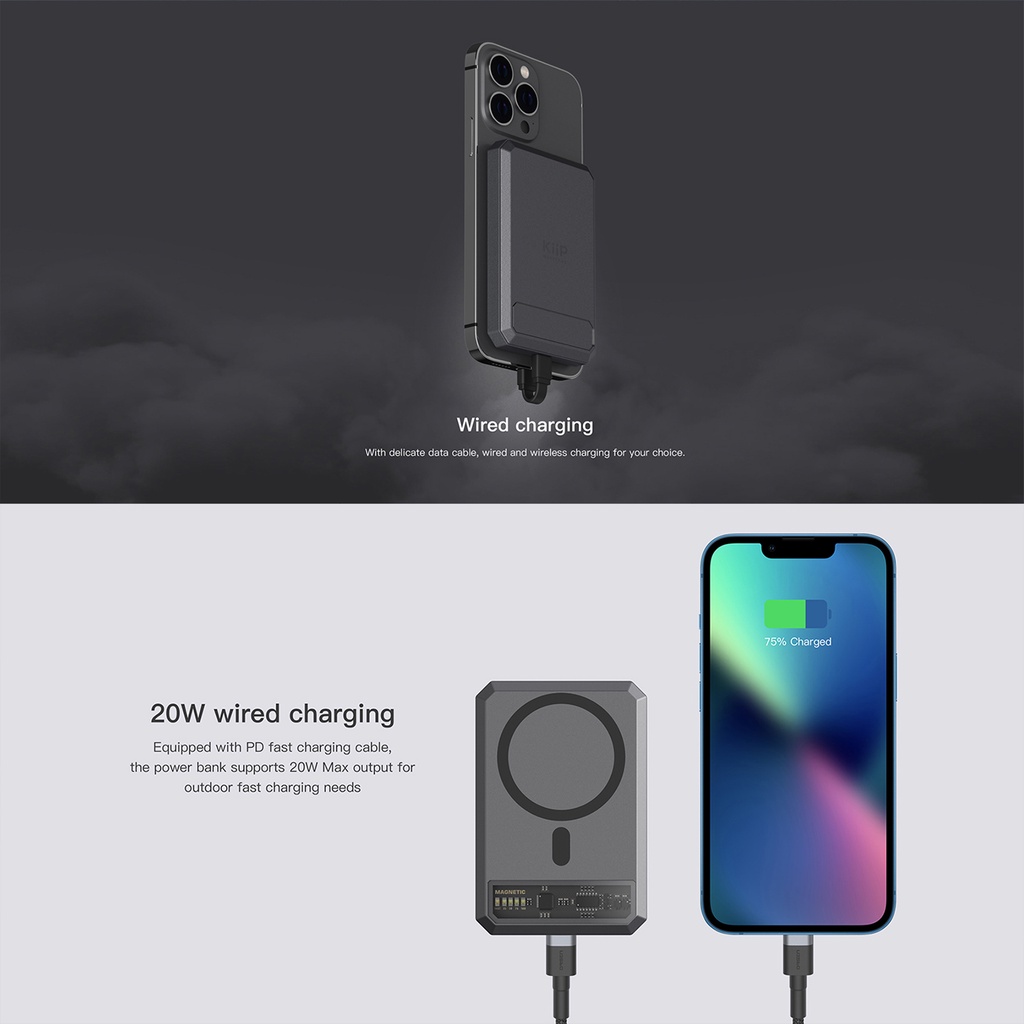 KiiP Wireless EW54 Power Bank Magnetic Magsafe 20W Fast Charging Type C PD 10000 mAh