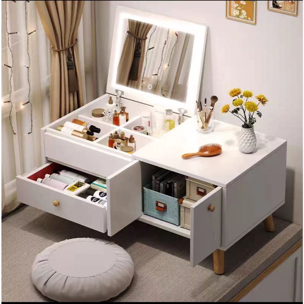Highline Meja Rias Lampu Led Meja Rias Rak Kosmetik Meja Rias Aesthetic Mini Modern Meja Kosmetik