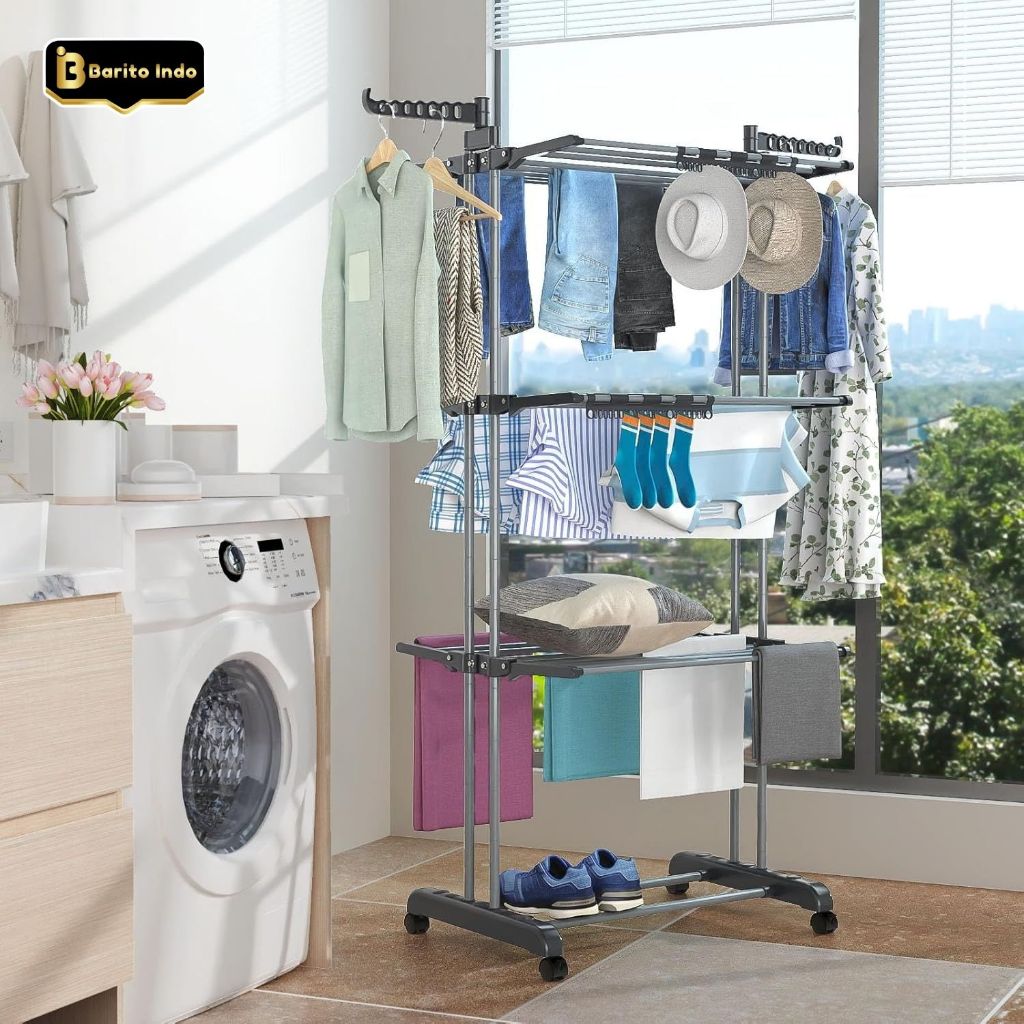 Rak Jemuran Baju Lipat Roda 4 Susun Stainless Steel Anti Karat Tahan Beban 40 Kg - B03A