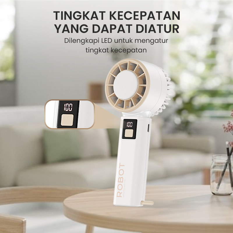 ROBOT Mini Fan Highspeed Handheld With LED Display 2000mAh Kipas Mini Genggam RT-HF01 Original - Garansi 1 Tahun
