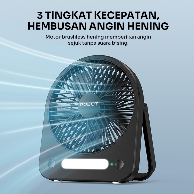 ROBOT Kipas Meja Portable dengan Lampu 2000mAh Rotasi 180° Derajat Hangable Desktop Mini Fan Kipas Gantung RT-BF20S Orig