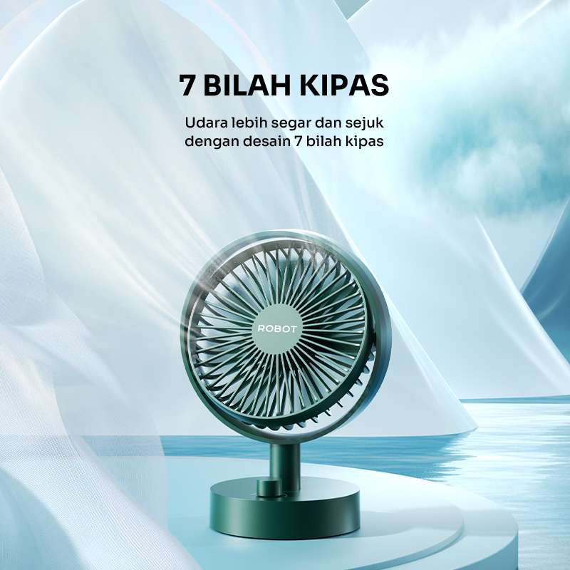 ROBOT Kipas Angin Meja Putar Rotasi 135° Derajat Otomatis 4000mAh Kipas Portable Berdiri Mini Fan Desktop RT-BF18 Plus G
