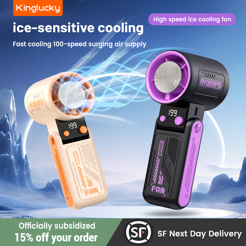 Kinglucky Kipas Kecepatan Tinggi Portabel Semikonduktor Turbo Genggam Foldable Fan Pendingin Mini Tampilan 199 Digital L