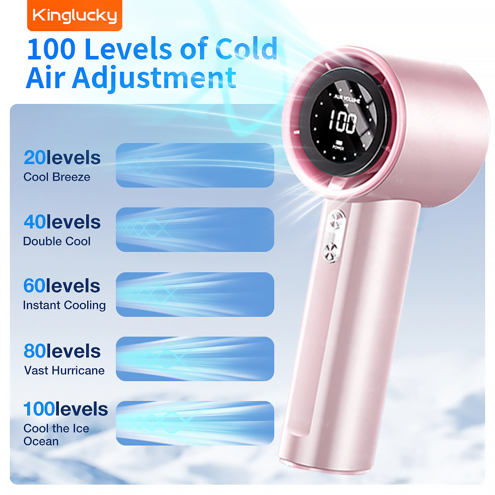 kinglucky Portabel Mini High-speed Kipas Strong Wind 100 Gear Adjustable Turbo kipas Kipas Angin Semi-Conductor Fan Digi