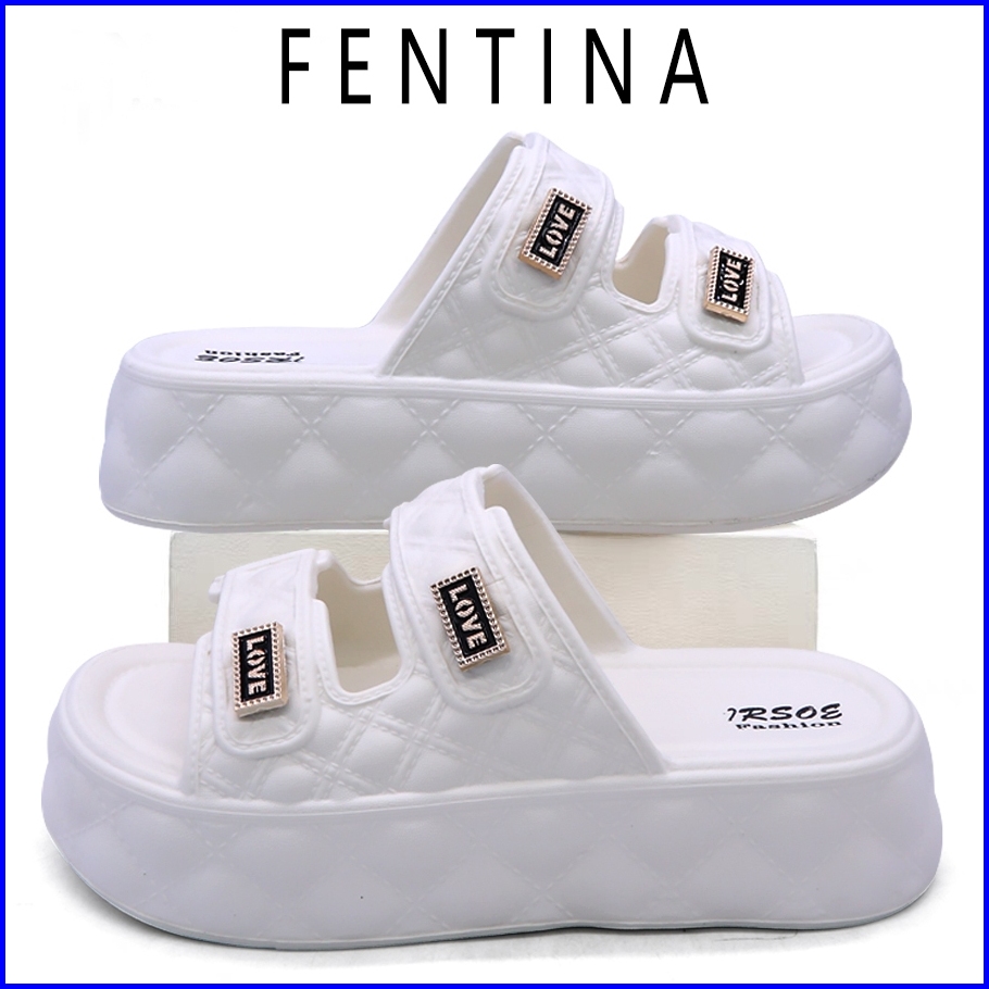 Fentina Sandal Wanita Kekinian Sandal Jelly Slop Wedges Wanita Korea Dewasa Tinggi Sandal Fuji