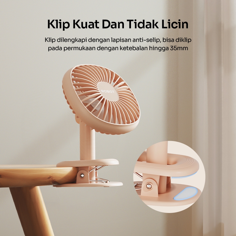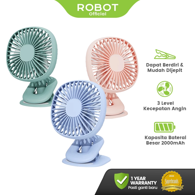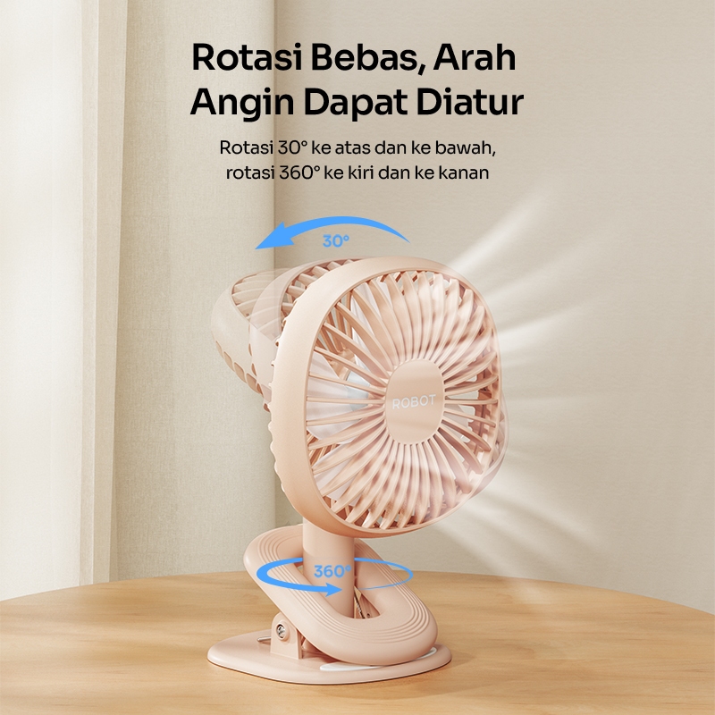 ROBOT Kipas Angin Mini Portabel 2000mAh Kipas Meja Mini Clip Rotasi 360 Derajat Kipas e Senyap RT-BF10B Original - Garan