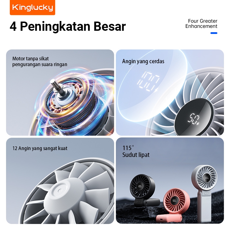 kinglucky High-speed kipas Mini Portable kipas angin 100 Gear Wind dapat dilipat Digital Display Adjustable Turbo kipas
