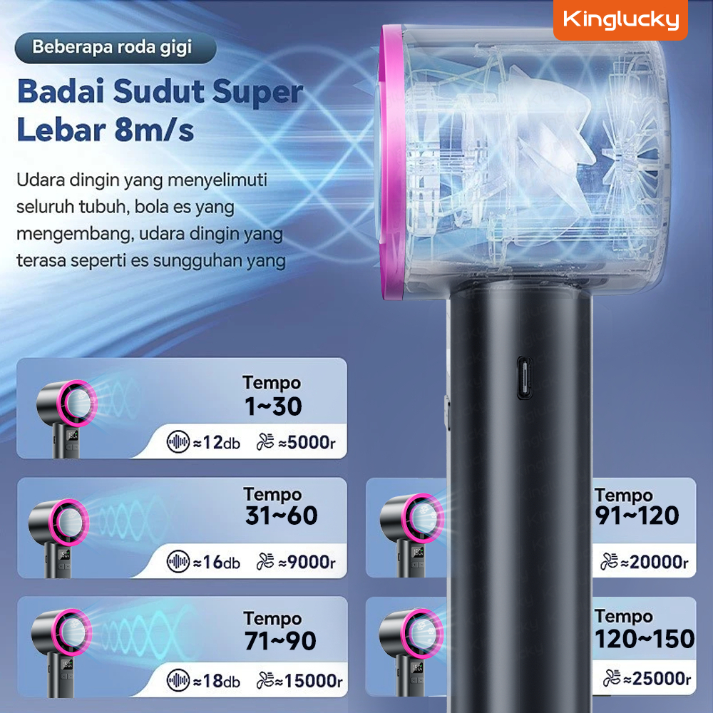 Kinglucky S-15 Mini High-speed Cooling Fan Strong Cold Wind 150 Gear Wind Speed Semi-Conductor Fan Digital Display Turb