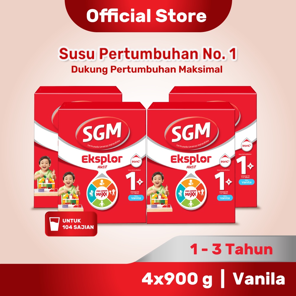 SGM Eksplor Aktif 1+ Pro-GressMaxx Susu Bubuk Pertumbuhan Vanilla 4 x 900 gr