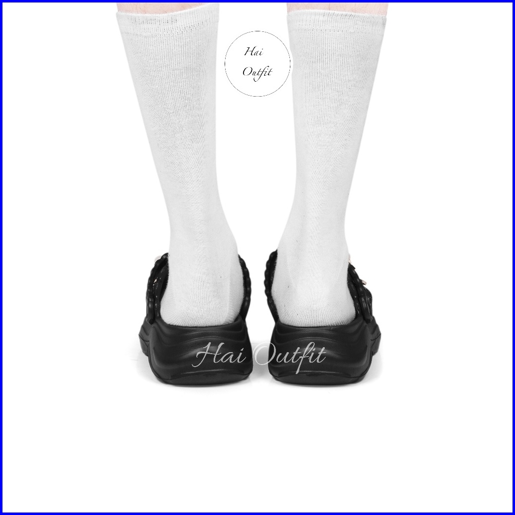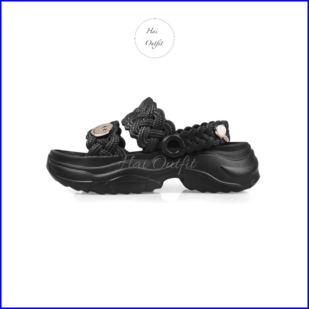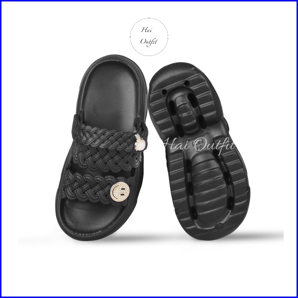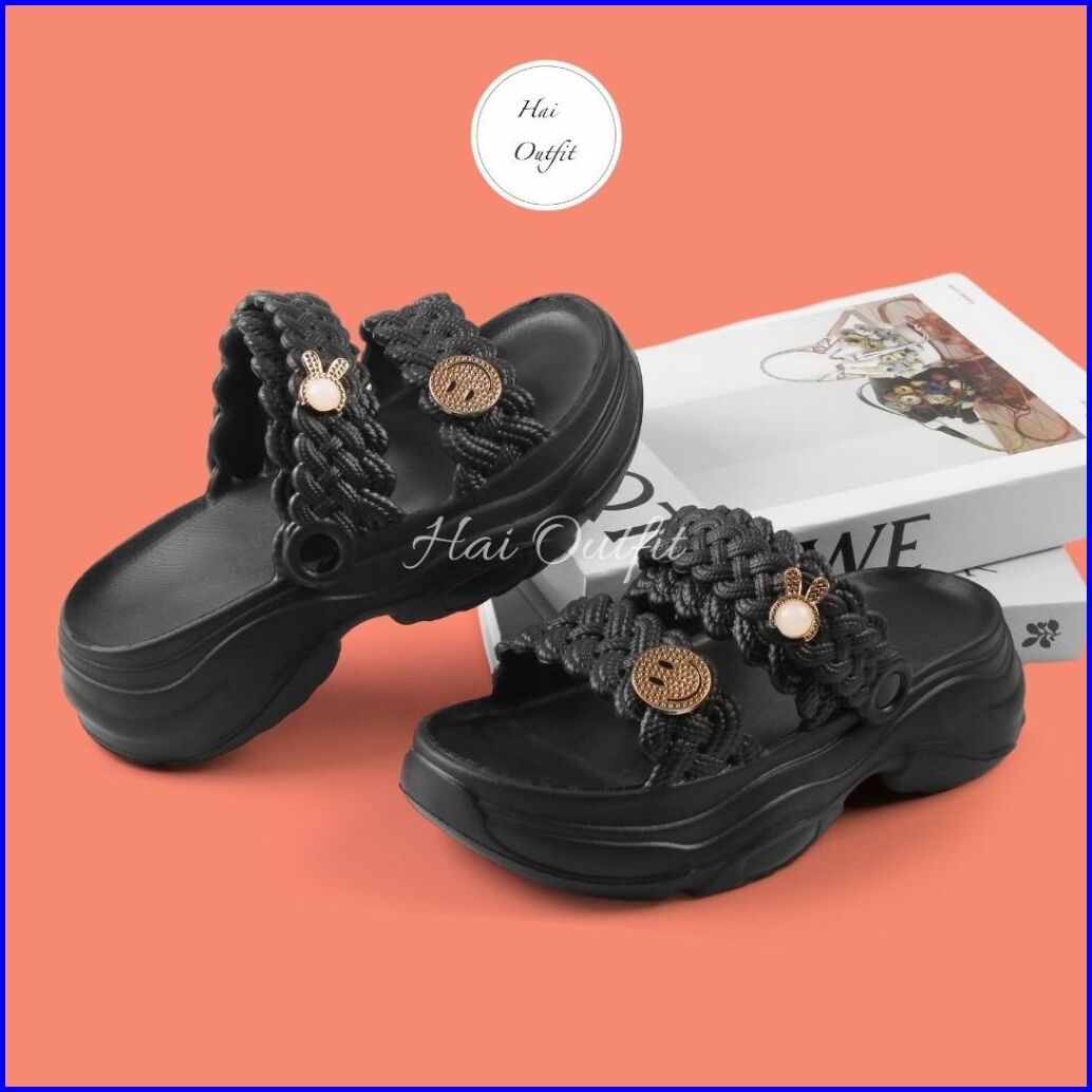 Hai Outfit - Sandal Wanita Selop Wedges Model Tali Dua Karet Eva Empuk Nyaman Terlaris Tifani Hitam