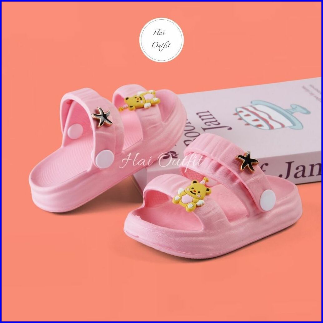 Hai Outfit - Sandal Anak Perempuan Selop Jibbitz Beruang Super Trendy Nala Pink