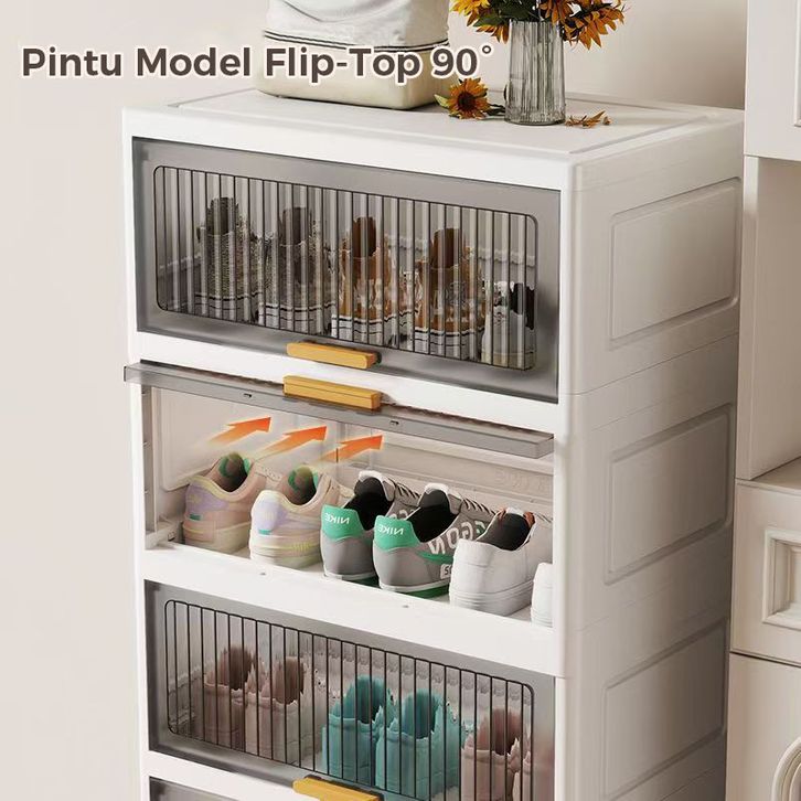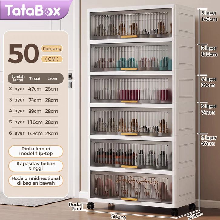 TataBox Lemari Sepatu Susun Minimalis Rak Sepatu Plastik Multifungsi Rak Sepatu Tertutup Anti Debu