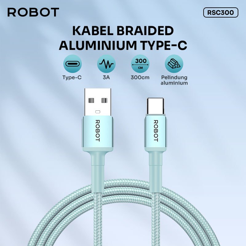 ROBOT Kabel Data 300cm RSC300 3A Micro USB to Type C Original - Garansi 1 Tahun