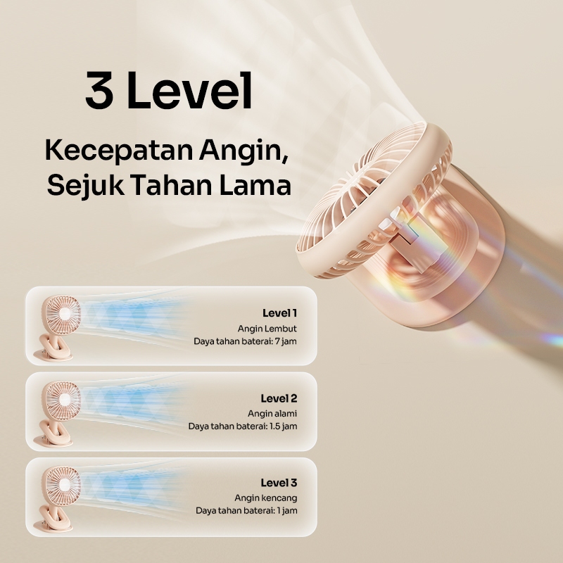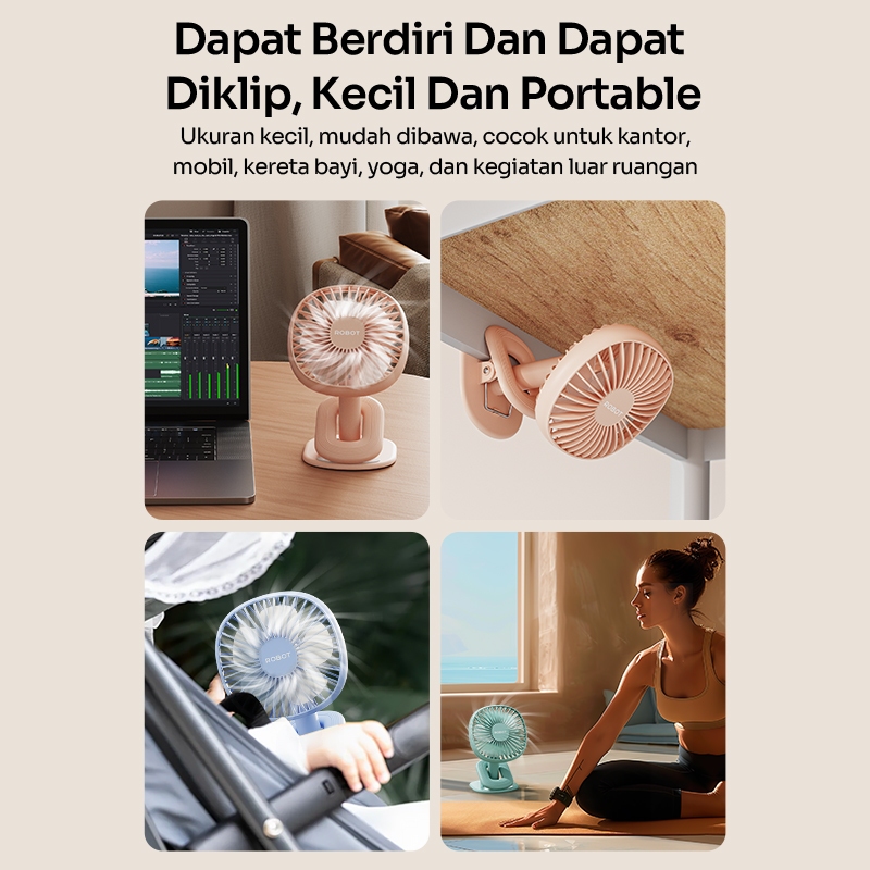 ROBOT Kipas Angin Mini Portabel 2000mAh Kipas Meja Mini Clip Rotasi 360 Derajat Kipas e Senyap RT-BF10B Original - Garan