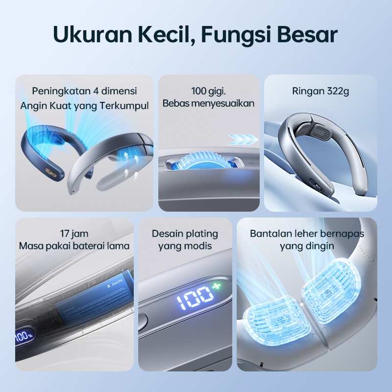 JISULIFE Kipas Leher Portable Desain Tanpa Bilah 100 Tingkat Layar LED Baterai 5000mAh Bahan Lembut di Kulit Segar dan T