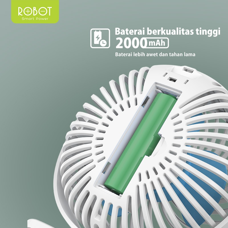 ROBOT Kipas Angin Jepit Portable Rotatable 720° Mini Fan 2000mAh Anti Bising RT-BF10 Original - Garansi 1 Tahun