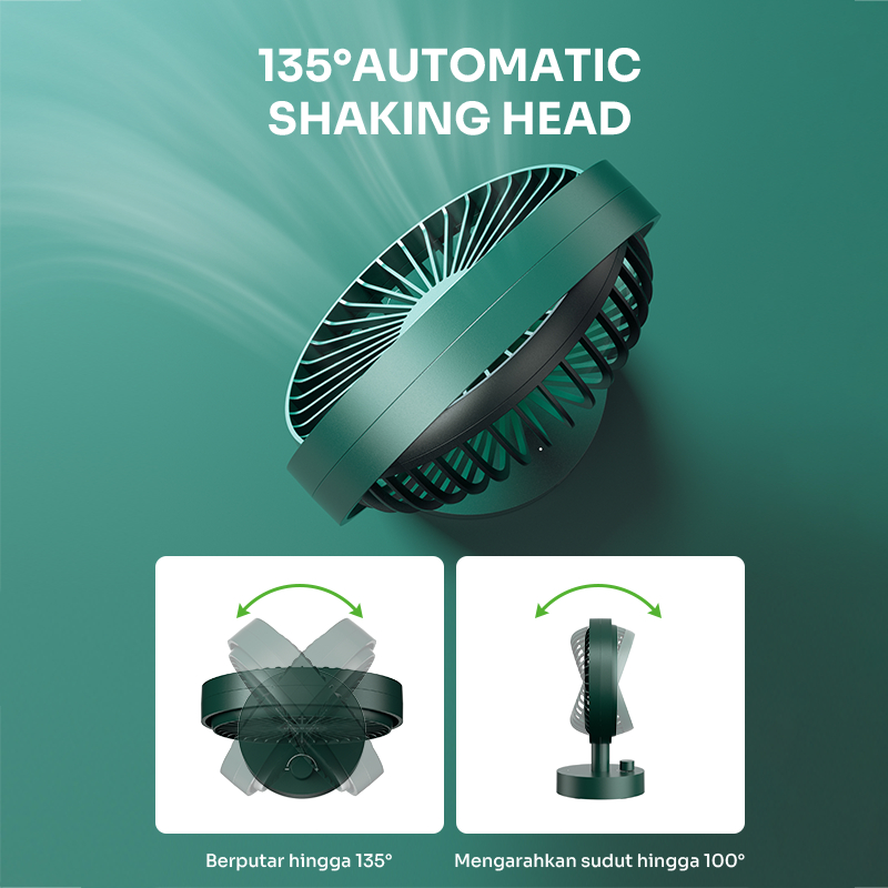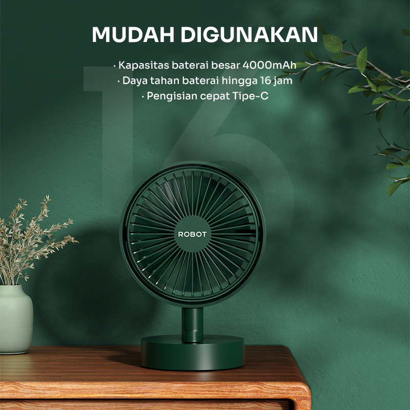 ROBOT Kipas Angin Meja Putar Rotasi 135° Derajat Otomatis 4000mAh Kipas Portable Berdiri Mini Fan Desktop RT-BF18 Plus G