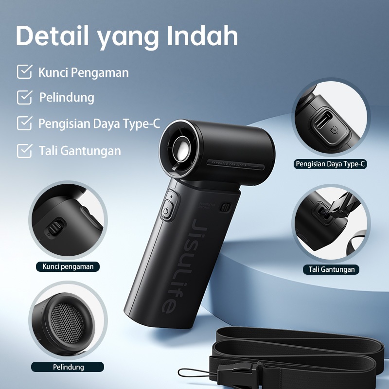 JISULIFE Kipas Angin Mini Portable Pengumpul Angin Turbo 5000mAh Dengan Daya 5 Tingkat Pengaturan Angin Kencang Yang Dap
