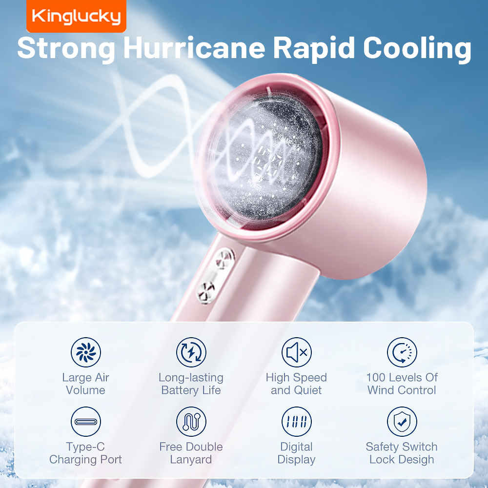 kinglucky Portabel Mini High-speed Kipas Strong Wind 100 Gear Adjustable Turbo kipas Kipas Angin Semi-Conductor Fan Digi