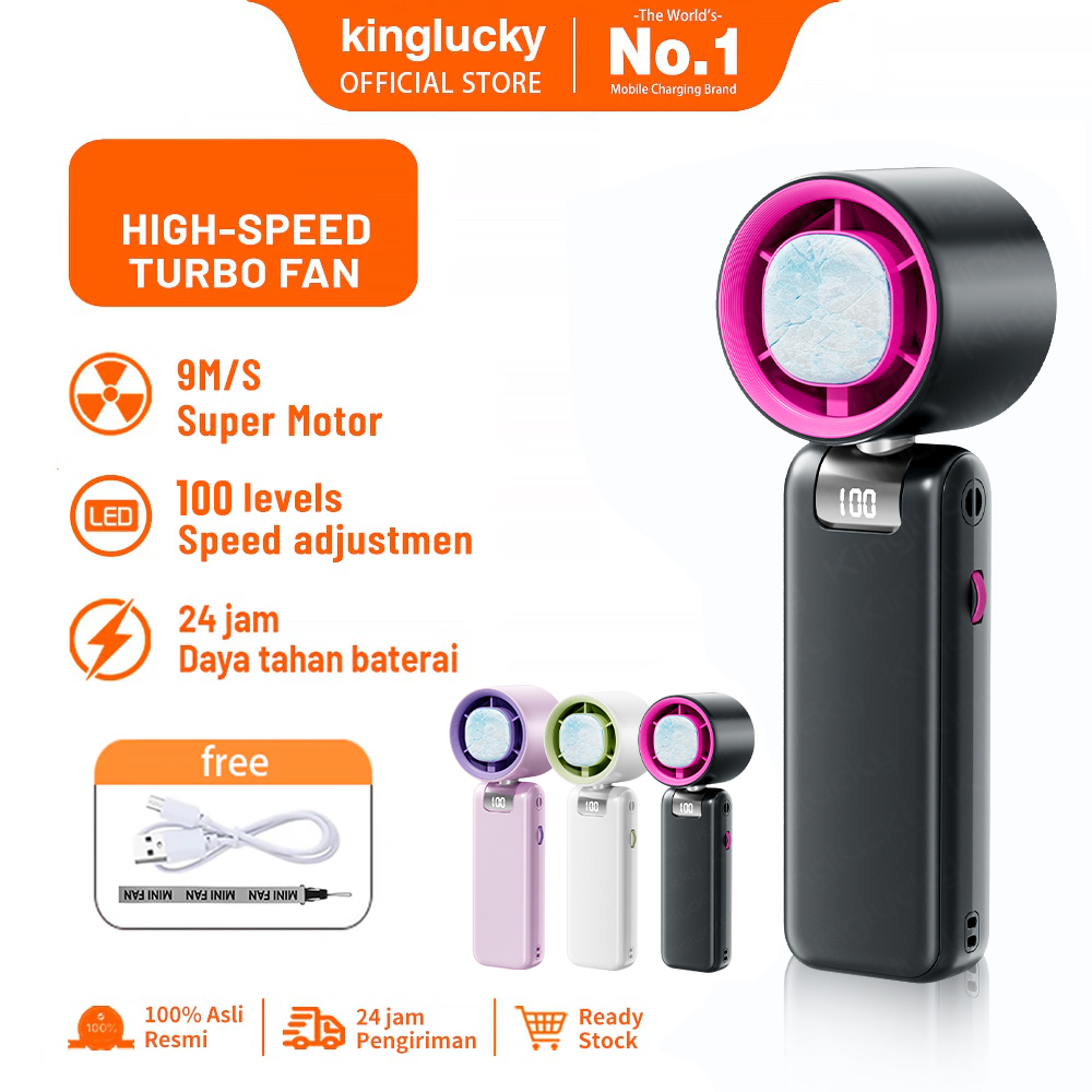 KingLucky Mini 16℃ Kipas pendingin s029 Strong Wind 100 Gear Wind Angin LED Digital Display Kipas Genggam Turbin Berkec