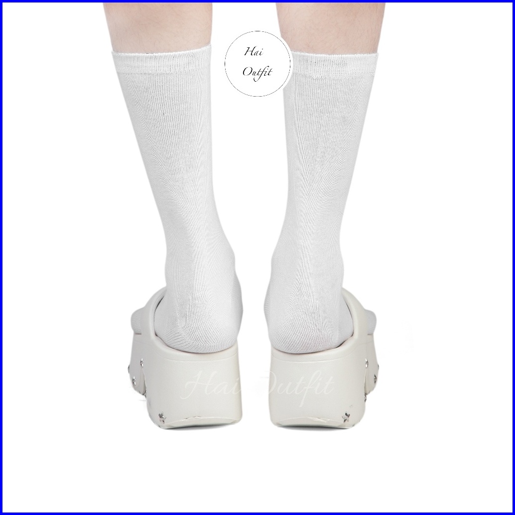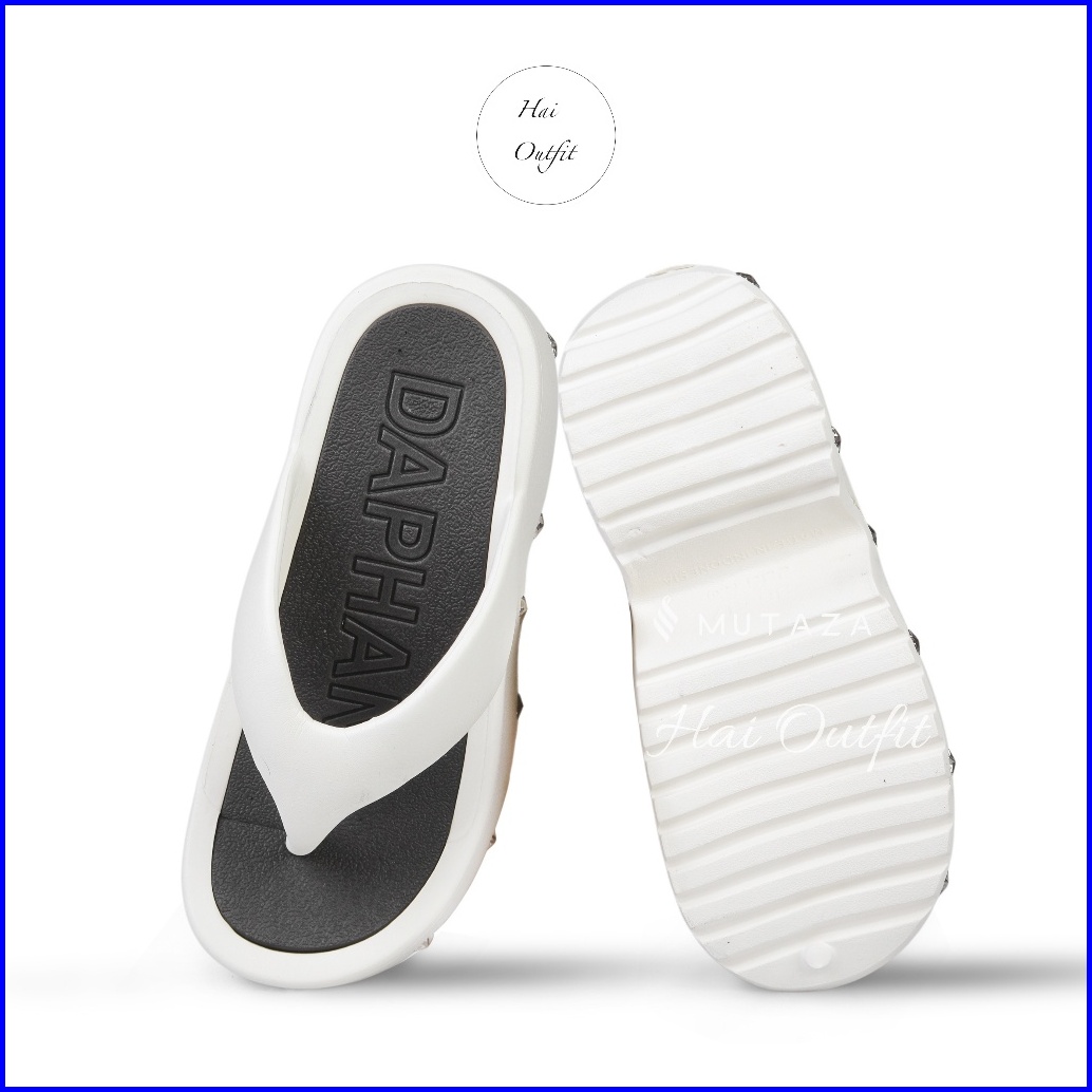 Hai Outfit - Sandal Jepit Wedges Wanita Dewasa Karet Empuk Trendy Renata Putih