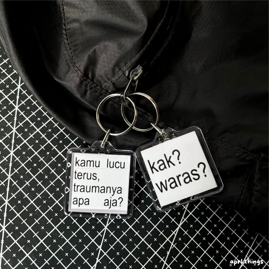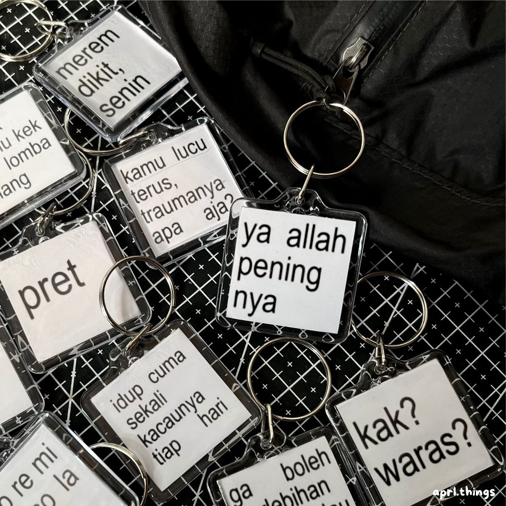 GANTUNGAN KUNCI KEYCHAIN MEME TULISAN / bisa custom tulisan / gantungan kunci meme twit lucu gen z brat / ganci putih ae