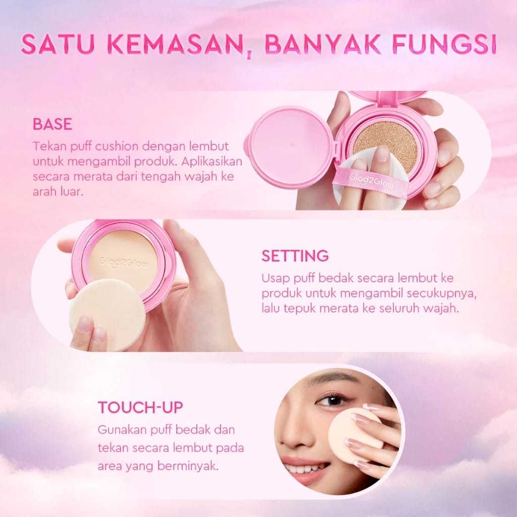 GLAD2GLOW 2in1 Perfect Pair Cushion Powder Fondation Waterproof Make Up Glowing Full Coverage